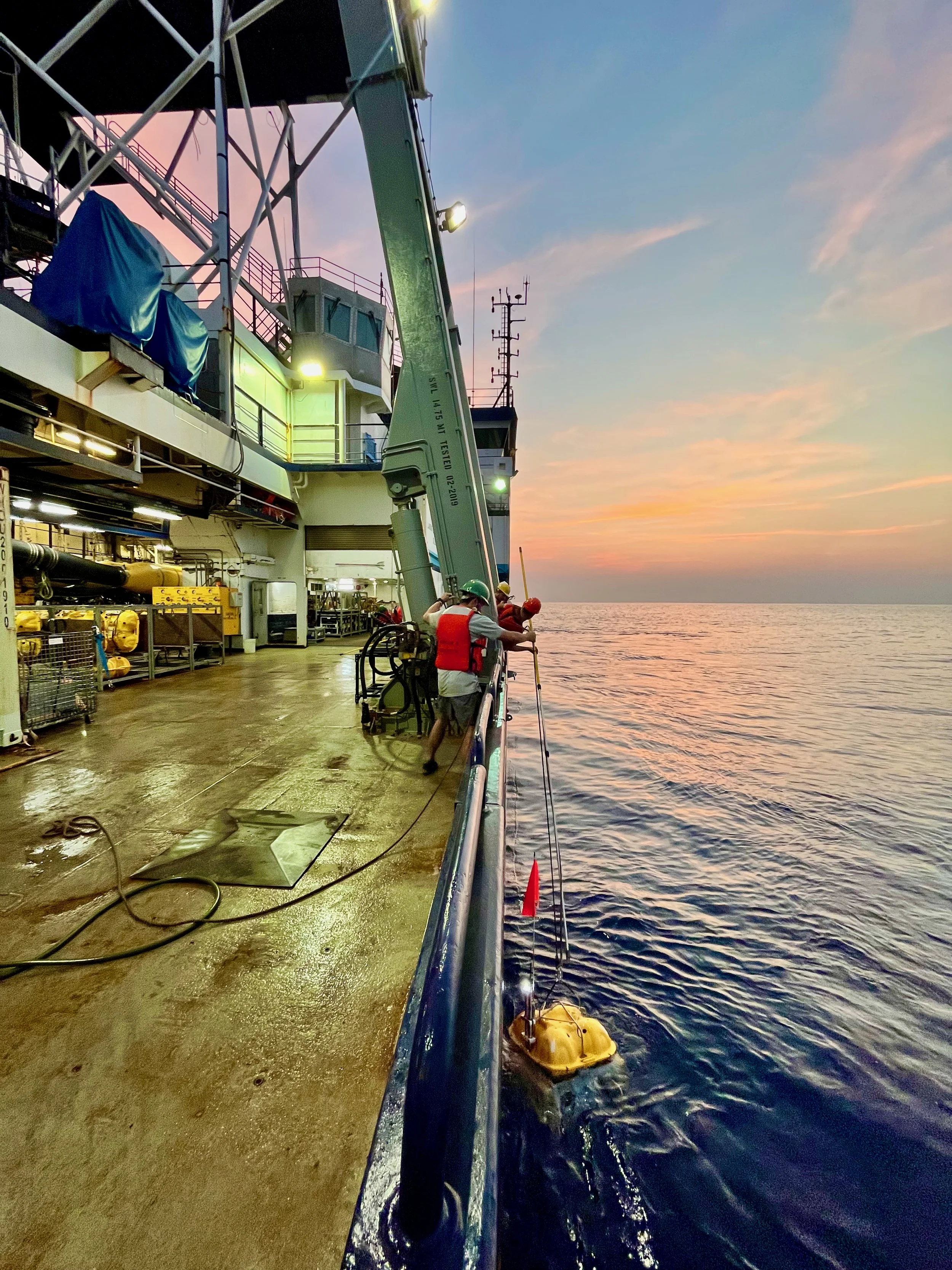 Deploying ocean-bottom seismometers for the ¡Me Gusta! cruise offshore Mexico.